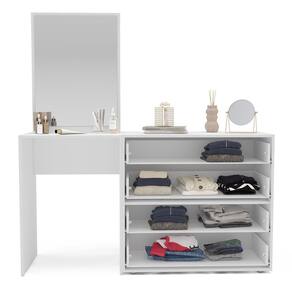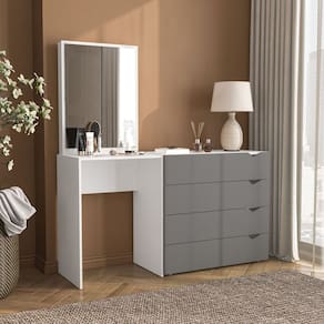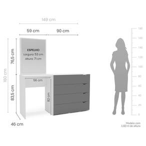 A Cômoda Penteadeira com Espelho Porto da Politorno Móveis é a escolha perfeita para quem busca elegância, funcionalidade e otimização de espaço em um único móvel. Com design moderno e sofisticado na cor cinza e branca, ela combina a praticidade de uma cômoda com a utilidade de uma penteadeira, ideal para quartos que exigem versatilidade sem abrir mão do estilo. Com 149 cm de largura, 160 cm de altura e 46 cm de profundidade, oferece amplo espaço com 4 gavetas funcionais, um tampo generoso para itens de uso diário e um espelho grande que valoriza ainda mais o ambiente. Fabricada em MDP com acabamento em pintura UV semi fosco, é resistente, durável e fácil de limpar, trazendo beleza e praticidade para sua rotina com o padrão de qualidade da Linha Porto da Politorno. Produto Montado: Sim Acabamento da Gaveta: Pintura UV Altura do Espelho: 71 cm Ambiente Principal: Quarto codigo_ean: 7900288187727 Complexidade da Montagem: Média: pode ser montado por mais de uma pessoa e/ou necessite de maior conhecimento para montagem Cor: Cinza/Branco Cor do Produto: Cinza/Branco Cor Interna: Branco Escala de Brilho: Semi-Fosco Escala de Brilho da Gaveta: Semi-Fosco Espessura do Espelho: 3 mm Fita Integrada: Sim Formato do Espelho: Retangular Gaveta com Chave: Não Itens Inclusos: 1 Cômoda, Kit de Ferragens, Manual de Montagem e Termo de Garantia Largura do Espelho: 53 cm Linha ou Coleção: Porto Manual de Montagem e Instalação: https://product-hub-prd.madeiramadeira.com.br/941594108/documents/4e196788-c34f-42b2-a2c1-094d852172e83049182622417515665660058.pdf Marca: Politorno Material da Gaveta: MDF/MDP Material do Fundo: MDP Material Principal: MDP Necessita Montagem: Sim Origem do Produto: Nacional Peso: 32 kg Peso Máximo por Gaveta: 5 kg Possui Espelho: Sim Possui Nichos: Não Possui Pés: Não Possui Portas: Não Possui Prateleiras: Não Quantidade de Espelho: 01 Quantidade de Gavetas: 06 Gavetas Recomendações de Uso, Manutenção e Limpeza: Utilize um pano macio umedecido com água e sabão neutro, seguido de pano seco. Não utilize produtos químicos ou abrasivos para limpeza, pois estes danificam o revestimento do móvel. Sapatas Niveladoras: Não Sistema de Montagem: Cavilha, Parafuso, Minifix e prego. Suporta Até (kg): 15 kg Tipo de Cômoda: Adulto Tipo de Corrediça da Gaveta: Metálica Telescópica Tipo de Fixação do Espelho: Fita Dupla Face Tipo de Puxador da Gaveta: Embutido Marca: Não Informado