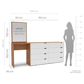 A Cômoda 8 Gavetas Porto da Politorno Móveis é a escolha perfeita para quem precisa de ainda mais espaço sem abrir mão do design elegante e contemporâneo. Com visual clean e acabamento em pintura UV branco e freijó semi fosco, essa peça da Linha Porto traz sofisticação e praticidade ao ambiente, sendo ideal para quartos que exigem organização com estilo. Com 209 cm de largura, 160 cm de altura e 46 cm de profundidade, ela oferece excelente capacidade de armazenamento por meio de 8 gavetas espaçosas, ideais para acomodar roupas, acessórios, documentos e outros itens do dia a dia com total funcionalidade. Fabricada em MDP de alta qualidade, é resistente, durável e de fácil limpeza, tornando-se uma solução completa para manter seu espaço sempre organizado, bonito e harmonioso. Produto Montado: Sim Acabamento da Gaveta: Pintura UV Altura do Espelho: 71 cm Ambiente Principal: Quarto codigo_ean: 7900288188557 Complexidade da Montagem: Média: pode ser montado por mais de uma pessoa e/ou necessite de maior conhecimento para montagem Cor: Branco/Freijó Cor do Produto: Branco/Freijó Cor Interna: Freijó Escala de Brilho: Semi-Fosco Escala de Brilho da Gaveta: Semi-Fosco Espessura do Espelho: 3 mm Fita Integrada: Sim Formato do Espelho: Retangular Gaveta com Chave: Não Itens Inclusos: 1 Cômoda, Kit Ferragens, Manual de Montagem e Termo de Garantia Largura do Espelho: 53 cm Linha ou Coleção: Porto Manual de Montagem e Instalação: https://product-hub-prd.madeiramadeira.com.br/448669288/documents/1f9dc737-f08c-46b2-96de-73f0344db5b23049910622417515696706763.pdf Marca: Politorno Material da Gaveta: MDF/MDP Material do Fundo: MDP Material Principal: MDP Necessita Montagem: Sim Origem do Produto: Nacional Peso: 62 kg Peso Máximo por Gaveta: 5 kg Possui Espelho: Sim Possui Nichos: Não Possui Pés: Não Possui Portas: Não Possui Prateleiras: Não Quantidade de Espelho: 01 Quantidade de Gavetas: 08 Gavetas Recomendações de Uso, Manutenção e Limpeza: Utilize um pano macio umedecido com água e sabão neutro, seguido de pano seco. Não utilize produtos químicos ou abrasivos para limpeza, pois estes danificam o revestimento do móvel. Sapatas Niveladoras: Não Sistema de Montagem: Cavilha, Parafuso, Minifix e prego. Suporta Até (kg): 30 kg Tipo de Cômoda: Adulto Tipo de Corrediça da Gaveta: Metálica Telescópica Tipo de Fixação do Espelho: Fita Dupla Face Tipo de Puxador da Gaveta: Embutido Marca: Não Informado