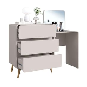 Marca: Completa Móveis | Modelo: Cômoda com Penteadeira e 3 Gavetas | Material: MDP | Acabamento: Fosco | Peso do Produto (Kg): 44,4 | Quantidade de Volume: 1 | Peso Suportado (Kg): 27 | Quantidade de Gavetas: 3 | Tipo da Corrediça: Telescópica | Peso Suportado por Gaveta (Kg): 4 | Possui Chave: Não | Possui Puxador: Não | Quantidade de Pés: 4 | Material dos Pés: Plástico | Necessita Montagem: Sim | Nível de Dificuldade da Montagem: Médio | Sistema de Montagem: Sistema de montagem via parafusos, cavilhas, pregos, sistema minifix | País de Origem: Brasil | Duração da Garantia: 6 meses | Tipo de Garantia: Garantia do Fabricante | Dimensão (A x L x C) cm: 121x45x134,8 | Quantidade de Item: 1 | Tipo de Móvel: Cômoda | Principal Característica do Produto 01: Cômoda Penteadeira Multifuncional | Principal Característica do Produto 02: Penteadeira com Espelho e 3 Gavetas Grande | Principal Característica do Produto 03: Design retrô com acabamento moderno e cantos arredondados | Baterias Necessárias: Não | Frágil: Não | Certificação de Teste Externo: Não Possui | Componentes Incluídos: Manual de Montagem | Número da Peça: CV005 | Inclui Manual de Montagem: Sim | Palavras-chave de Pesquisa: Cômoda infantil, penteadeira com espelho, penteadeira com gavetas | Possui Espelho: Sim | Profundidade (cm): 45 | Largura (cm): 134,8 | Altura (cm): 121 | Cor: Bege Dunas