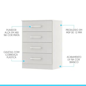 Você merece o melhor quando se trata de móveis para sua casa e a escolha certa para atender todas as suas necessidades. Com um design atual, une versatilidade, conforto e beleza. Com quatro gavetas, você terá muito espaço para manter tudo organizado e ao alcance das mãos. Produzida com materiais de excelente qualidade, garantindo a sua resistência ao desgaste diário e mantendo sua beleza e funcionalidade por muito tempo. O melhor em móveis no design atual aliando conforto, qualidade e ótimos preços, só na Menu Móveis!