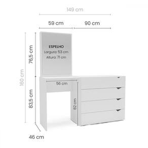 O(a) Cômoda Porto 4 Gavetas com Espelho Branco - Politorno é produzido em MDP na escala de brilho Semi-Fosco, e possui um grau de dificuldade de montagem: Fácil.