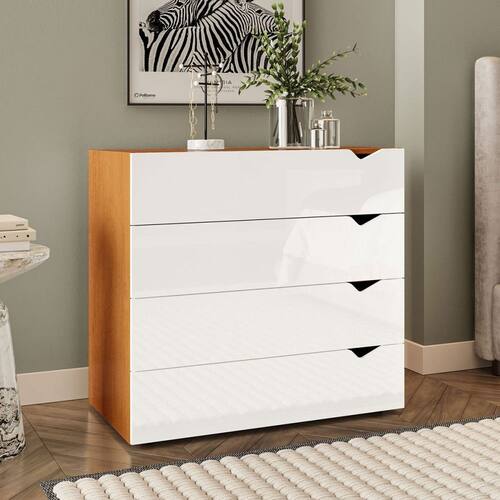 O(a) Cômoda Porto 4 Gavetas Freijó/Branco - Politorno é produzido em MDF e MDP na escala de brilho Semi-Fosco, e possui um grau de dificuldade de montagem: Médio.
