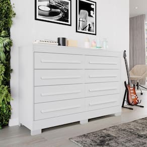 MDPA Cômoda Porto é a combinação perfeita entre funcionalidade, estilo e resistência. Produzida em MDP de 15 mm, ela oferece estrutura robusta e excelente durabilidade, ideal para quem busca um móvel prático com ótimo custo-benefí 8 gavetas espaçosas, equipadas com corrediças telescópicas que garantem abertura suave e segura, esta cômoda proporciona ampla capacidade de armazenamento para roupas, acessórios e itens pessoais. Seu design moderno é valorizado por uma moldura frisada elegante e puxadores em MDF madeirado, que adicionam um toque sofisticado ao escala de brilho fosca, pés em PVC resistentes (já inclusos no produto) e acabamento de qualidade, a Cômoda Porto se adapta facilmente a diferentes estilos de quarto seja de casal, solteiro ou infantil.