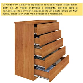 Cômoda Premium MDF Com 5 Gavetas Tcil - Marrom