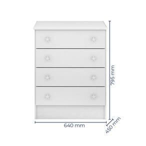 A Cômoda 4 Gavetas da Linha Doce Sonho é um lindo modelo para você que procura comodidade e conforto na hora de organizar as roupas e acessórios do seu bebê.