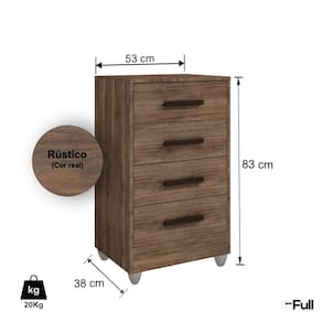 Cômoda Quarto Multiuso Compacta 4 Gavetas - Rústico