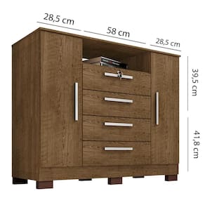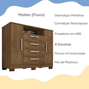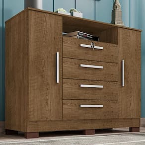 Apresentamos a Cômoda Rack com 2 Porta e 4 Gavetas Madri, uma móvel elegante e funcional para complementar seu ambiente com estilo e organização. Possui 1 fechadura com chave apenas na primeira gaveta. Estrutura em MDP de 12mm. Gavetas espaçosas equipadas com corrediças telescópicas, garantindo um deslizamento suave e silencioso, suas 2 portas equipadas com dobradiças metálicas. Puxadores em ABS, enquanto os pés de plástico proporcionam estabilidade e resistência. Além disso, a pintura UV texturizada oferece um acabamento impecável, realçando a durabilidade e beleza do móvel. Ideal para quem busca praticidade sem abrir mão do design. Este móvel chegará na sua casa separado em 01 volume.