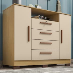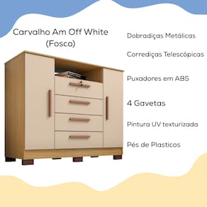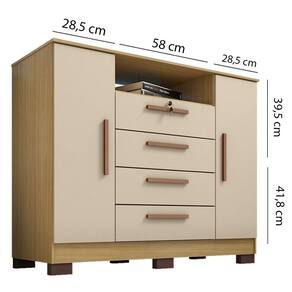 Apresentamos a Cômoda Rack com 2 Porta e 4 Gavetas Madri, uma móvel elegante e funcional para complementar seu ambiente com estilo e organização. Possui 1 fechadura com chave apenas na primeira gaveta. Estrutura em MDP de 12mm. Gavetas espaçosas equipadas com corrediças telescópicas, garantindo um deslizamento suave e silencioso, suas 2 portas equipadas com dobradiças metálicas. Puxadores em ABS, enquanto os pés de plástico proporcionam estabilidade e resistência. Além disso, a pintura UV texturizada oferece um acabamento impecável, realçando a durabilidade e beleza do móvel. Ideal para quem busca praticidade sem abrir mão do design. Este móvel chegará na sua casa separado em 01 volume.