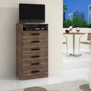 Cômoda Rack Multifuncional para TV com 6 Gavetas Rústico
