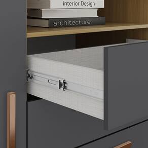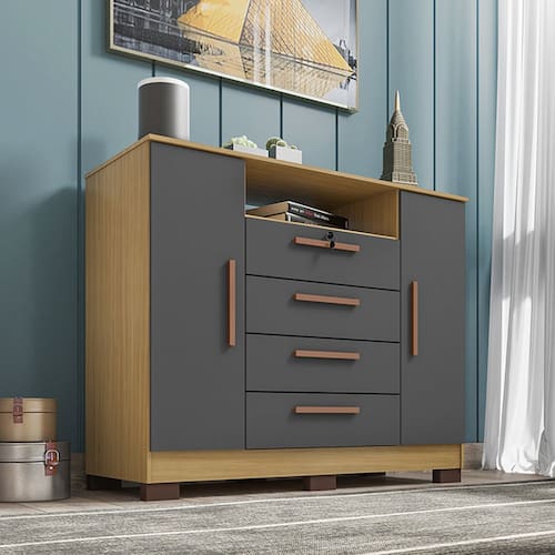 - Portas e Gavetas: 2 portas e 4 gavetas, oferecendo amplo espaço para armazenamento.