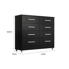 CÔMODA RAISSA| Com 8 gavetas dispõe de um design sofisticado é própria para pessoas exigentes com organização. As gavetas possuem CORREDIÇAS METÁLICAS, fazendo assim com que a gaveta não caia na hora que você for utilizar, evitando acidentes com crianças. O móvel suporta pesos de até 7kg em suas gavetas e 20kg no tampo suficiente para acomodar televisores, além disso acompanha pezinhos para melhor limpeza e durabilidade do produto. As gavetas são espaçosas e comportam um bom volume de roupas e acessórios em seu interior. Possui acabamento Touch Alto-Relevo ou Alto Brilho UV e Semibrilho parte interna. Tem um design moderno que ao mesmo tempo atende muito bem as reais necessidades de uma ou duas pessoas. Além desses detalhes é de fácil montagem. Altura 0,90m x Largura 1,10m x Profundidade 0,40m x Peso 51kg