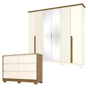 Cômoda Ravenna e Guarda Roupa Casal Napoli Off White Nature - Henn