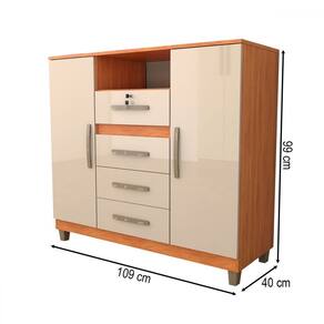 O(a) Cômoda Angra 2 Portas 4 Gavetas Cinamomo/Off White - Fellicci é produzido em MDP na escala de brilho Brilho e Semi-Brilho, e possui um grau de dificuldade de montagem: Médio.