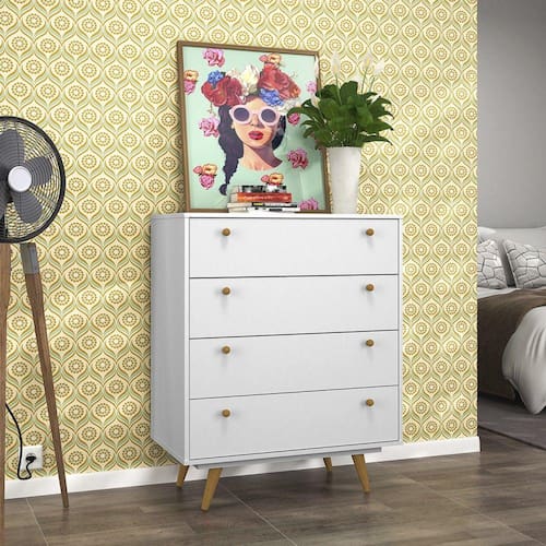 A Cômoda Retrô 35 Plus possui um design do retrô ao contemporâneo deixando o ambiente sofisticado. Possui quatro gavetas amplas e deslizantes com reforço.Cor: BrancoDimensões (AXLXP): 97,4 x 78 x 38,3cmMaterial da estrutura: MDF e MDP 15mm e 25mmRevestimento: Pintura UVAcabamento: AcetinadoTipo de Pés: Palito em Madeira Pinus envernizadosSistema de Abertura: Corrediças MetálicasNecessita de montagem? SimQuantidades de gavetas: 4Peso Suportado por Gaveta: 5kgPuxadores: ExternoQuantidade de Puxadores: 8Peso Suportado: Até 30kgPossui manual de montagem: SimRecomendação de limpeza: Pano úmido. Não aplicar lustra móveisGarantia: 3 meses Cômoda Retrô 35 Plus Branca - Olivar Moveis.