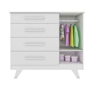 Características: Estrutura em MDF Corrediça telescópica Cabideiro metálico Puxadores em MDF