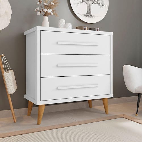 Cômoda Retrô Para Quarto 3 Gavetas Belvedere - Branco - Cor: Branco