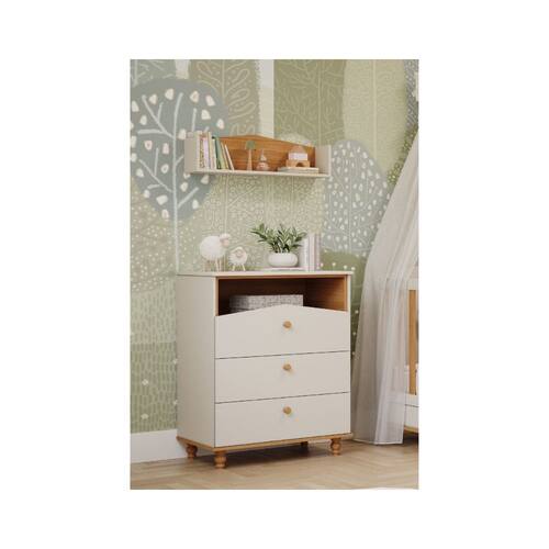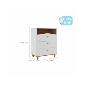 Seguindo o estilo lúdico, essa cômoda é perfeita para quem deseja um produto mais compacto e cheio de estilo. Possui nicho superior para organizar objetos de uso diário e 03 gavetas grandes com corrediças telescópicas que proporcionam deslizamento suave, maior abertura e melhor acesso às roupas. Os puxadores e pés são torneados em madeira maciça e conferem um charme especial ao produto. O tampo possui bordas arredondadas que recebem pintura em lacca com tinta atóxica e as peças retas recebem pintura UV também com tinta e verniz atóxicos.Fabricada com matéria-prima 100% MDF, um material ecologicamente correto e de ótima durabilidade e resistência;