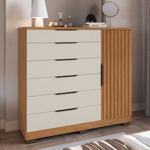 Cômoda Ripada 6 Gavetas 1 Porta com Pés Vegas Faimec - Palha