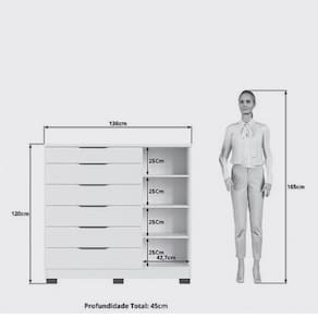 A Cômoda Ripada 6 Gavetas 1 Porta com Pés Vegas Faimec combina elegância e funcionalidade. Conta com 6 gavetas espaçosas e 1 porta para melhor organização. Com acabamento acetinado texturizado, sua estrutura em MDP garante durabilidade, enquanto as corrediças telescópicas proporcionam um deslizamento suave. Os puxadores em ABS e os pés agregam charme e estabilidade ao móvel, tornando-o uma excelente escolha para seu ambiente.