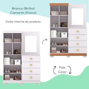 Com design moderno e funcional, a Cômoda Roupeiro Com Espelho 120 cm é a escolha ideal para otimizar seu espaço com elegância e praticidade. Equipada com 2 portas e 4 gavetas, oferece amplo armazenamento para roupas, acessórios e objetos pessoais. Estrutura em MDP de 15mm (Laterais em MDP de 12mm e forro em MDF de 3mm). Suas portas com dobradiças metálicas garantem maior resistência e durabilidade, enquanto as gavetas contem corrediças telescópicas que proporcionam um deslizamento suave e seguro. Além disso, conta com prateleiras móveis, permitindo ajustar o espaço interno conforme suas necessidades. Os puxadores agregam um toque sofisticado ao móvel, e os pés retangulares asseguram estabilidade e um visual contemporâneo. Acompanha Painel com Espelho. Este móvel chegará na sua casa separado em 03 volumes.