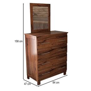 O(a) Cômoda Rústica 4 Gavetas Madeira Maciça Mogano - Loja é produzido em Madeira Maciça e Pinus na escala de brilho Alto Brilho, e possui um grau de dificuldade de montagem: Médio.