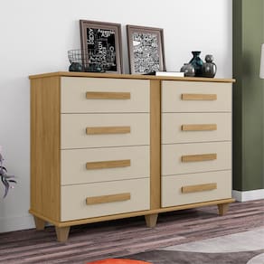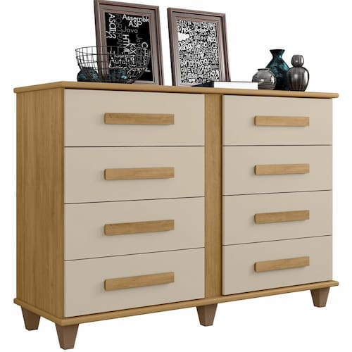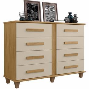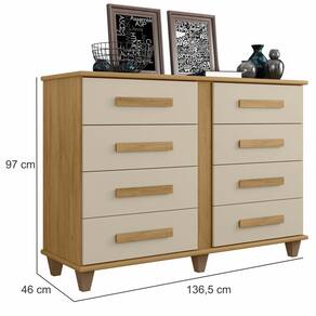 Cômoda RV Móveis Geórgia 8 gavetas largura de 136,5 cm e pes Cinamomo OFF White