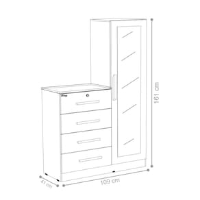 Dispõe de 4 gavetas e 4 prateleiras com profundidade excelente para acomodar todas as suas roupas e 1 espelho.