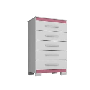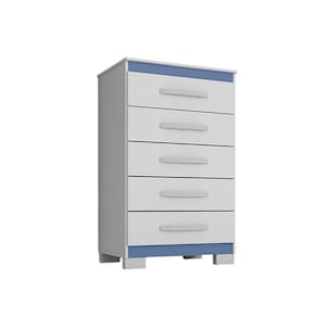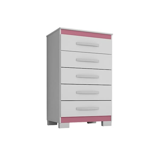 Com 90 cm de altura, 56 cm de largura e 39 cm de profundidade, oferece 5 gavetas equipadas com corrediças telescópicas de 300 mm, proporcionando abertura suave e silenciosa. Os puxadores Lisboa em ABS cromado e os pés plásticos em marrom conferem charme e robustez à peça.