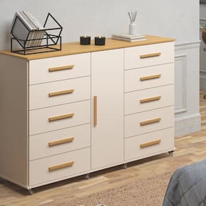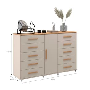 Com 10 gavetas equipadas com Trilho Telescópico, você terá amplo espaço para armazenar roupas, acessórios e objetos pessoais de forma organizada e acessível. Além disso, a presença de uma porta confere um toque de sofisticação ao móvel, permitindo a guarda de itens maiores ou mais delicados com segurança.