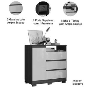 Cômoda Sapateira 1 Porta 3 Gavetas Com Nicho Alana