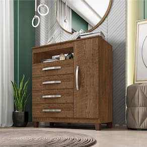 Apresentamos a Cômoda Sapateira Dijon, um móvel versátil e elegante projetado para atender às necessidades de organização do seu quarto. Com uma porta, quatro gavetas espaçosas e uma prateleira, esta cômoda oferece amplo espaço para guardar suas roupas, acessórios e sapatos.