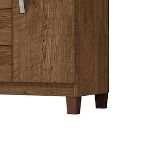 Esta cômoda é ecologicamente correta e de montagem simples, tornando-a uma escolha prática e consciente. Os quatro pés de plástico na cor tabaco garantem estabilidade, e as gavetas deslizam suavemente graças às corrediças metálicas. Os puxadores cromados adicionam um toque de elegância ao design.