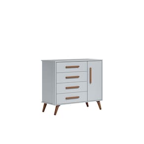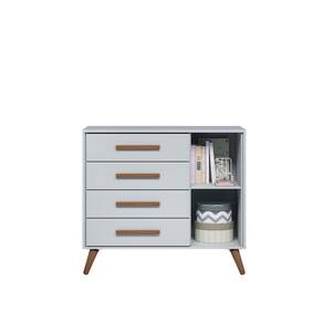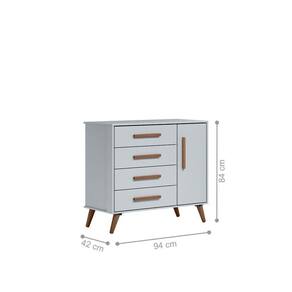 Esta cômoda foi feita para quem procura um móvel funcional e espaçoso para o quarto do bebê. Possui quatro gavetas e uma repartição de sapateira, proporcionando mais organização para vestuário e demais objetos.