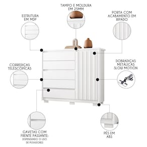 Com 5 gavetas, você terá espaço de sobra para organizar suas roupas, acessórios e itens pessoais, ou até mesmo para guardar peças de cama, mesa e banho. As corrediças telescópicas garantem um deslize suave e silencioso ao abrir e fechar as gavetas, facilitando o acesso aos seus pertences. Além disso, é uma cômoda sapateira já que conta om 1 porta que oferece espaço extra. Outro ponto alto é que essa cômoda possui tampo e moldura de 25mm, o que torna esse móvel durável e resistente. Para completar, os pés oferecerem estabilidade e segurança, ao passo que o acessório de fixação na parede evita tombamentos acidentais.