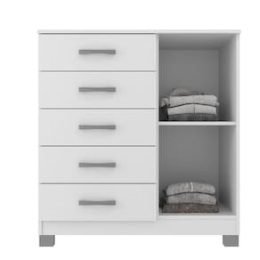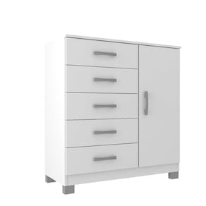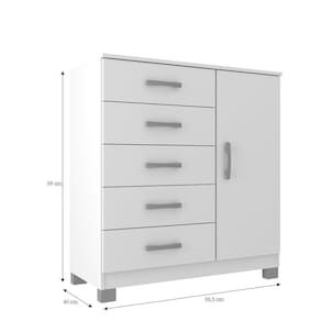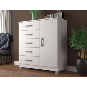 Cômoda sapateira 5 gavetas e 1 porta com pés, confeccionado com matérias de qualidade, ela possui amplo espaço interno para deixar os seus pertences organizados e sempre à mão. Com cores e design que combinam perfeitamente com toda sua decoração. Produto Montado: Sim Acabamento da Gaveta: Laca Acabamento da Porta: Laca Acabamento da Prateleira: Laca Acabamento dos Pés: Liso Altura dos Pés: 4 cm Altura Máxima dos Pés: 4.0000 Ambiente Principal: Quarto codigo_ean: 7909903503720 Complexidade da Montagem: Baixa: pode ser montado por uma pessoa sozinha Cor: Branco Cor do Produto: Branco Cor Flex: nao Cor Interna: BRANCO Escala de Brilho: Fosco Escala de Brilho da Gaveta: Fosco Escala de Brilho da Porta: Super Brilho Escala de Brilho da Prateleira: Fosco Gaveta com Chave: Não Itens Inclusos: 1 Cômoda, Kit Ferragens e Manual de Montagem Linha ou Coleção: Zurique Manual de Montagem e Instalação: https://product-hub-prd.madeiramadeira.com.br/882484/documents/04aff7d0-e58d-453b-8d46-5c70d608d59da4f0fa4c9950f00465475cp151.pdf Material da Gaveta: MDP Material da Porta: MDP Material da Prateleira: MDP Material do Fundo: MDP Material do Puxador da Gaveta: Cromado Material do Puxador da Porta: Cromado Material dos Pés: Plástico Material Principal: MDP Montagem Flex: nao Necessita Montagem: Sim Origem do Produto: Nacional Pés Reguláveis: Não Peso: 32 kg Peso Máximo por Gaveta: 30 kg Peso Máximo por Prateleira: 30 kg Possui Espelho: Não Possui Nichos: Não Possui Pés: 04 Possui Portas: Sim Possui Prateleiras: Sim Possui Rodízio: Não Quantidade de Gavetas: 05 Gavetas Quantidade de Prateleiras: 01 Prateleira Recomendações de Uso, Manutenção e Limpeza: Utilize pano umedecido com água. Sapatas Niveladoras: Não Sistema de Montagem: Parafusos Suporta Até (kg): 60 kg Tipo de Corrediça da Gaveta: Plástica Tipo de Dobradiça/Corrediça da Porta: Alumínio Tipo de Porta: Bater Tipo de Puxador da Gaveta: Externo Tipo de Puxador da Porta: Externo