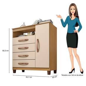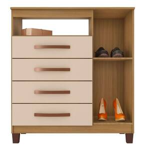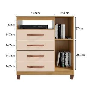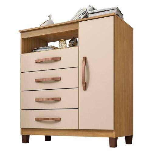 Cômoda Sapateira 1 Porta e 4 Gavetas Cannes Carvalho Americano/Off White - Incorplac