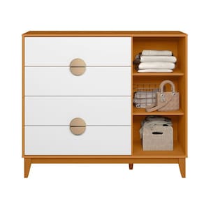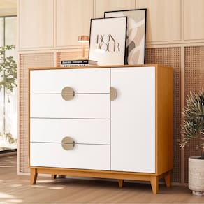 Renove seu ambiente com a Cômoda Sapateira Ipê! Com 1 porta e 4 gavetas, oferece espaço organizado e funcional. Os puxadores de ABS metalizado dourado e os apliques inspirados na palha indiana adicionam um toque de elegância. Sua porta com dobradiças slow motion garante fechamento suave, enquanto os pés em madeira conferem durabilidade e charme. Aproveite a praticidade e o estilo da Cômoda Sapateira Ipê para transformar seu espaço. Produto Montado: Sim Acabamento da Gaveta: Pintura UV Acabamento da Porta: Pintura UV Acabamento da Prateleira: Pintura UV Acabamento dos Pés: Pintura Ambiente Principal: Quarto codigo_ean: 7900288071569 Complexidade da Montagem: Média: pode ser montado por mais de uma pessoa e/ou necessite de maior conhecimento para montagem Cor: Cinamomo/Branco Cor do Produto: Cinamomo/Branco Cor do Puxador: Bege Cor Interna: Cinamomo Escala de Brilho: Fosco Escala de Brilho da Gaveta: Fosco Escala de Brilho da Porta: Fosco Escala de Brilho da Prateleira: Fosco Gaveta com Chave: Não Itens Inclusos: 1 Cômoda + Manual de Montagem + Kit Ferragens Linha ou Coleção: Albatroz Manual de Montagem e Instalação: https://product-hub-prd.madeiramadeira.com.br/976172/documents/99f529e3-25af-45aa-9f88-1ee5768a7e97quema195comodasapateiraipE.pdf Marca: Albatroz Móveis Material da Gaveta: MDP Material da Porta: MDP Material da Prateleira: MDP Material do Fundo: HDF Material do Puxador da Gaveta: ABS Material do Puxador da Porta: ABS Material dos Pés: Madeira Material Principal: MDP Necessita Montagem: Sim Origem do Produto: Nacional Pés Reguláveis: Não Peso: 52,2 kg Peso Máximo por Gaveta: 5 kg Peso Máximo por Prateleira: 5 kg Possui Espelho: Não Possui Nichos: Não Possui Pés: 05 Possui Portas: Sim Possui Prateleiras: Sim Possui Rodízio: Não Quantidade de Gavetas: 04 Gavetas Quantidade de Prateleiras: 02 Prateleiras Recomendações de Uso, Manutenção e Limpeza: Limpar Com flanela Ou Pano Macio Seco, Não Utilizar Produtos Abrasivos, Desengordurantes, Álcool Ou Solvente. Não Expor O Produto Diretamente Á Luz Solar E Á Umidade. Sapatas Niveladoras: Não Sistema de Montagem: Parafusos, Cavilhas E Minifix. Suporta Até (kg): 43 kg Tipo de Cômoda: Infantil Tipo de Corrediça da Gaveta: Metálica Telescópica Tipo de Dobradiça/Corrediça da Porta: Metálica Tipo de Porta: Bater Tipo de Puxador da Gaveta: Externo Tipo de Puxador da Porta: Externo