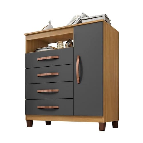 Cômoda Sapateira 1 Porta E 4 Gavetas Monique Carvalho/grafite - Pallazio
