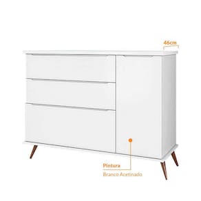 Cômoda Sapateira 3 Gavetas 1 Porta Retrô Infantil Pé Palito Melinda Bco - Phoenix Baby