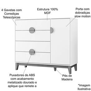 • 1 x Cômoda Sapateira 4 Gavetas 1 Porta 100% MDF 1 x Manual de montagem 1 x Acessórios para montagem