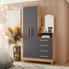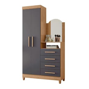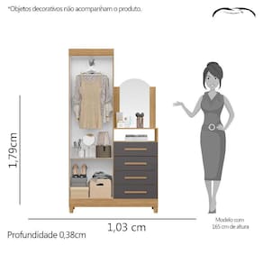 Características: Estrutura MDP 12 mm 2 Portas MDP 15 mm 4 Gavetas com corrediças metálicas Espelho medindo 59x33,5x3 cm (AxLxP) Puxadores em MDF revestido 1 Cabideiro plástico 1 Prateleira 4 Pés