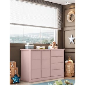 Cômoda Sapateira 4 Gavetas 2 Portas Com Cabideiro Infantil Pérola Rsê - Phoenix Baby