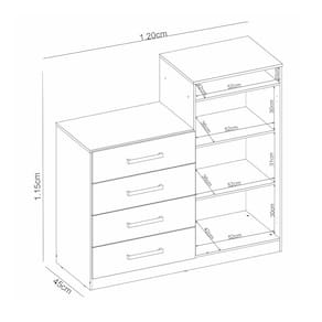 Características:Estrutura em MDPAcabamento em Pintura UV 02 Portas articuladas04 Gavetas com Corrediças MetálicasPuxadores em plástico ABSPrateleiras com Amplo espaço *Nicho ideal para DecoraçãoOBJETOS DECORATIVOS NÃO ACOMPANHAM O PRODUTO.Limpar utilizando apenas pano umedecido com água, nunca utilizar abrasivos ou esponjas de aço. Acompanha manual e todos os acessórios para montagem. Recomendamos que a montagem seja feita por um profissional. Garantia de 03 meses para eventuais defeitos de fabricação.Dimensões:Altura: 115 cmLargura: 120 cmProfundidade: 45 cmItens Inclusos:01 Cômoda Informações de Transporte:Peso Total: 70 Kg1 VolumeATENÇÃO, OBSERVAÇÕES IMPORTANTES.As imagens são meramente ilustrativas, não serão enviados objetos de decoração, eletrônicos e demais itens que não estejam especificados nos itens inclusos. É indispensável que seja feita a conferência do produto no ato da entrega e caso haja alguma divergência, seja feito o contato imediato com a loja e notificação no canhoto. Constatando defeito no ato da entrega o produto não deverá ser montado até tratativa com a loja. Não será efetuada a troca do produto após a montagem ter sido efetuada. A montagem é de total responsabilidade do cliente e defeitos na montagem serão tratadas como assistências. Os processos de pendências serão tratados mediante a fotos para analise e conferência da informação. As cores do produto podem variar de acordo com o seu monitor, a iluminação do ambiente em que você está e até mesmo a sua percepção visual. Não nos responsabilizamos, no ato da entrega, por subir escadas e elevadores. Eventuais despesas são de responsabilidade do cliente. Dúvidas serão tratadas via protocolo.
