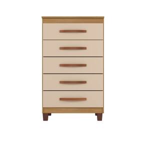 O móvel conta com 5 gavetas com corrediças metálicas, garantindo suavidade e facilidade no manuseio. O tampo superior suporta até 8 kg, proporcionando uma superfície adicional para objetos decorativos ou uso prático no dia a dia.
