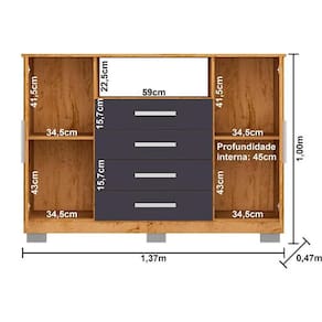 - 4 Gavetas com amplo espaço com corrediças metálicas