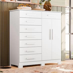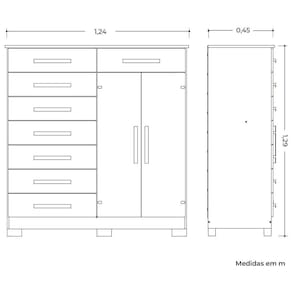 Característica da Cômoda Sapateira: - Estrutura em MDP; - Acabamento de pintura em UV; - 2 portas de bater com dobradiças metálicas; - 8 Gavetas com corrediças telescópicas; - Puxadores em MDF revestidos; - Cabideiro; - Não acompanha itens de decoração ou quaisquer objetos fora o móvel na imagem; - Imagens interna meramente ilustrativa para ver a divisão do produto;