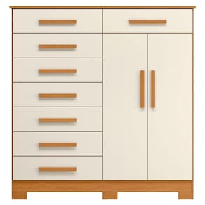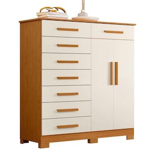 Cômoda Sapateira Alta Julieta 8 Gavetas 2 Portas Cinamomo/off White A cômoda sapateira é ideal organizar seu espaço com praticidade e estilo. Sua estrutura é em MDP de alta qualidade. Seu designer é moderno. Esta peça funcional combina elegância com utilidade, proporcionando uma solução de armazenamento versátil para o seu quarto ou closet. Dimensões da Cômoda Sapateira Julieta: - Altura: 129 cm - Largura: 125 cm - Profundidade: 45 cm