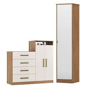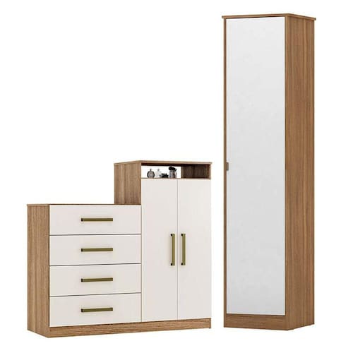 Cômoda Sapateira Áurea e Armário Multiuso Reflex 2 Amêndola Touch Off White – Demóbile