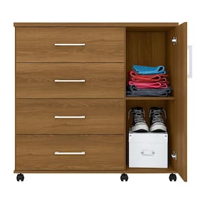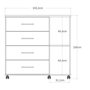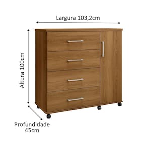 Ela dispõe de quatro amplas gavetas, ideais para armazenar acessórios, toalhas de banho, roupas, peças íntimas, ou seja, tudo que possa ser guardado com facilidade.