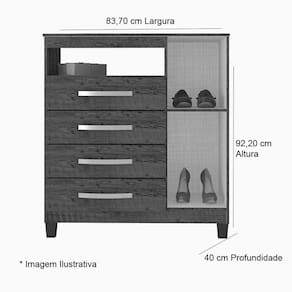 Cômoda Sapateira Cannes 4 Gavetas 1 Porta